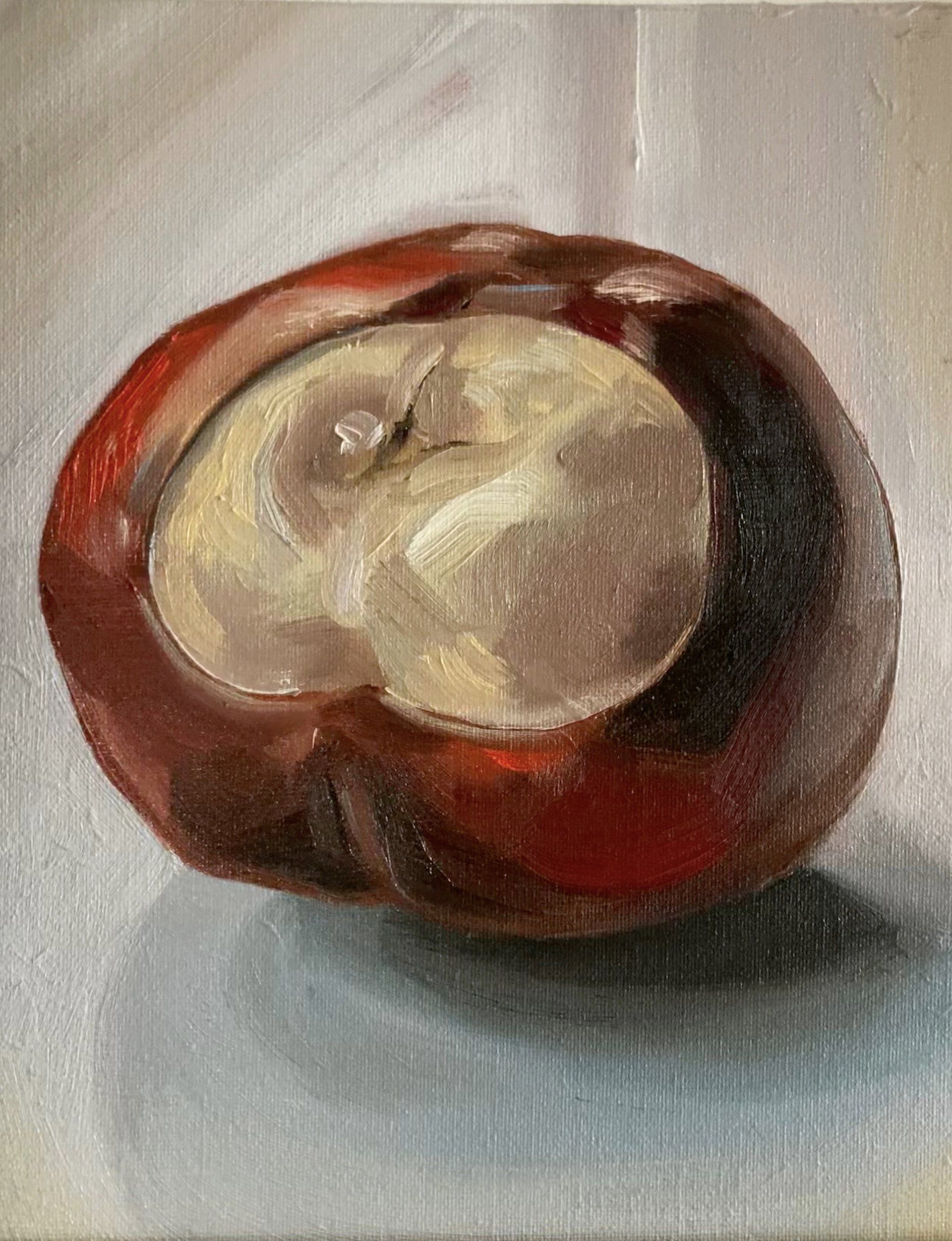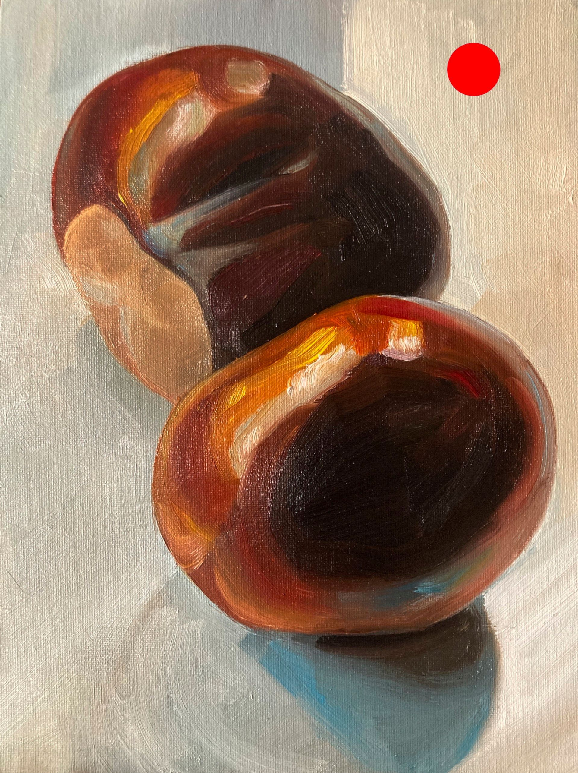 During the frustrating periods when the weather is too poor to go outside to paint, I sometimes turn to still life. My latest batch of work is a series of larger than life conker paintings.